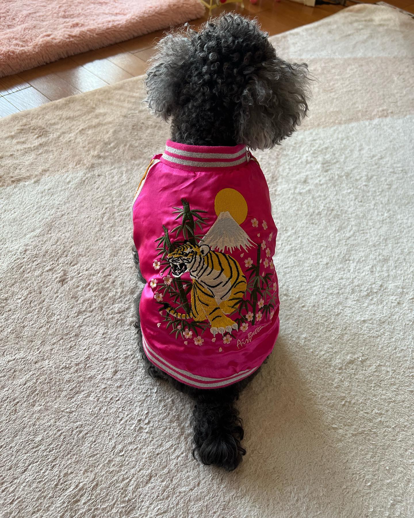 とーたんが買ってきたスカジャン。とーたんが買う洋服、いっつもキツキツかダボダボで着れたもんじゃないのよ。