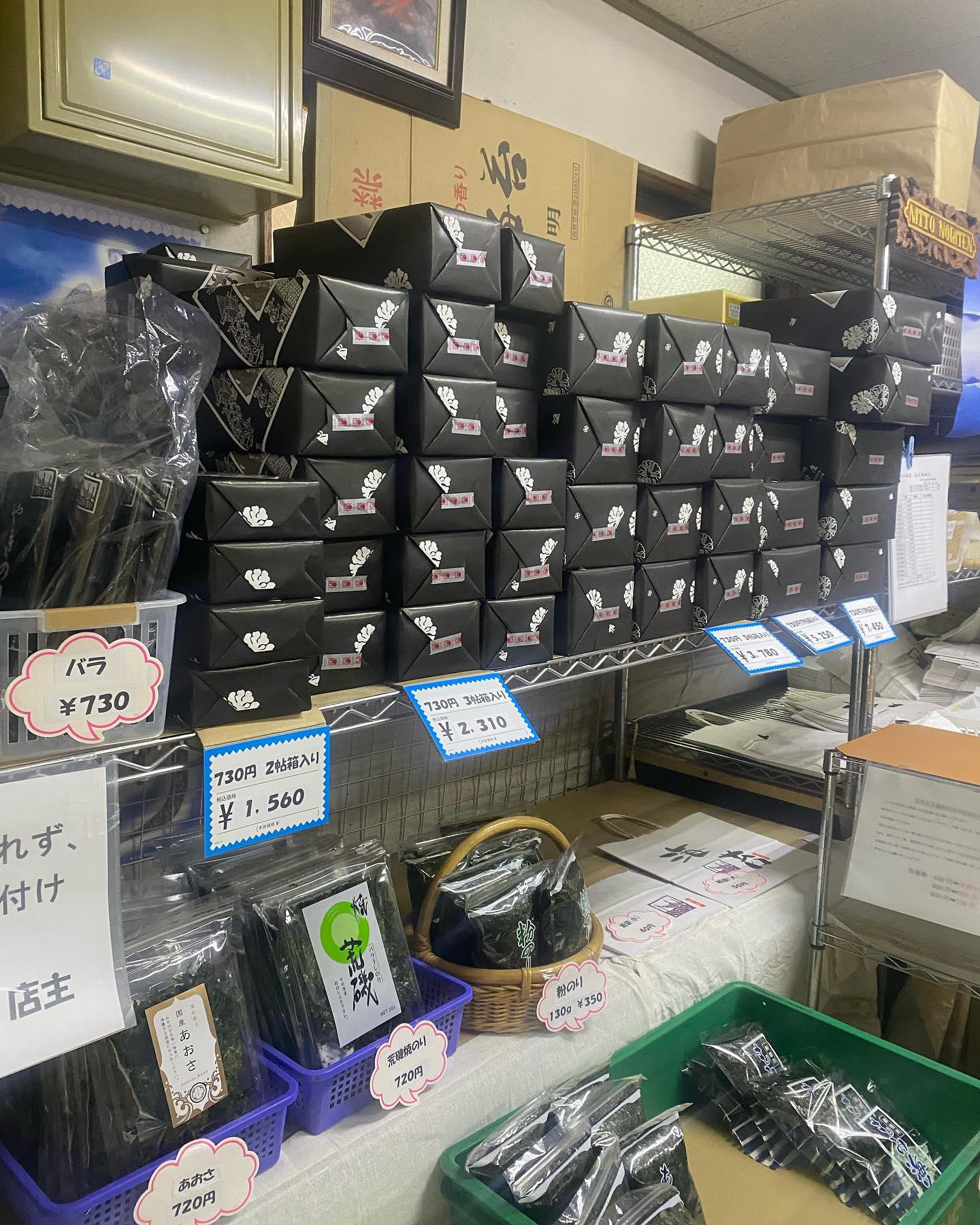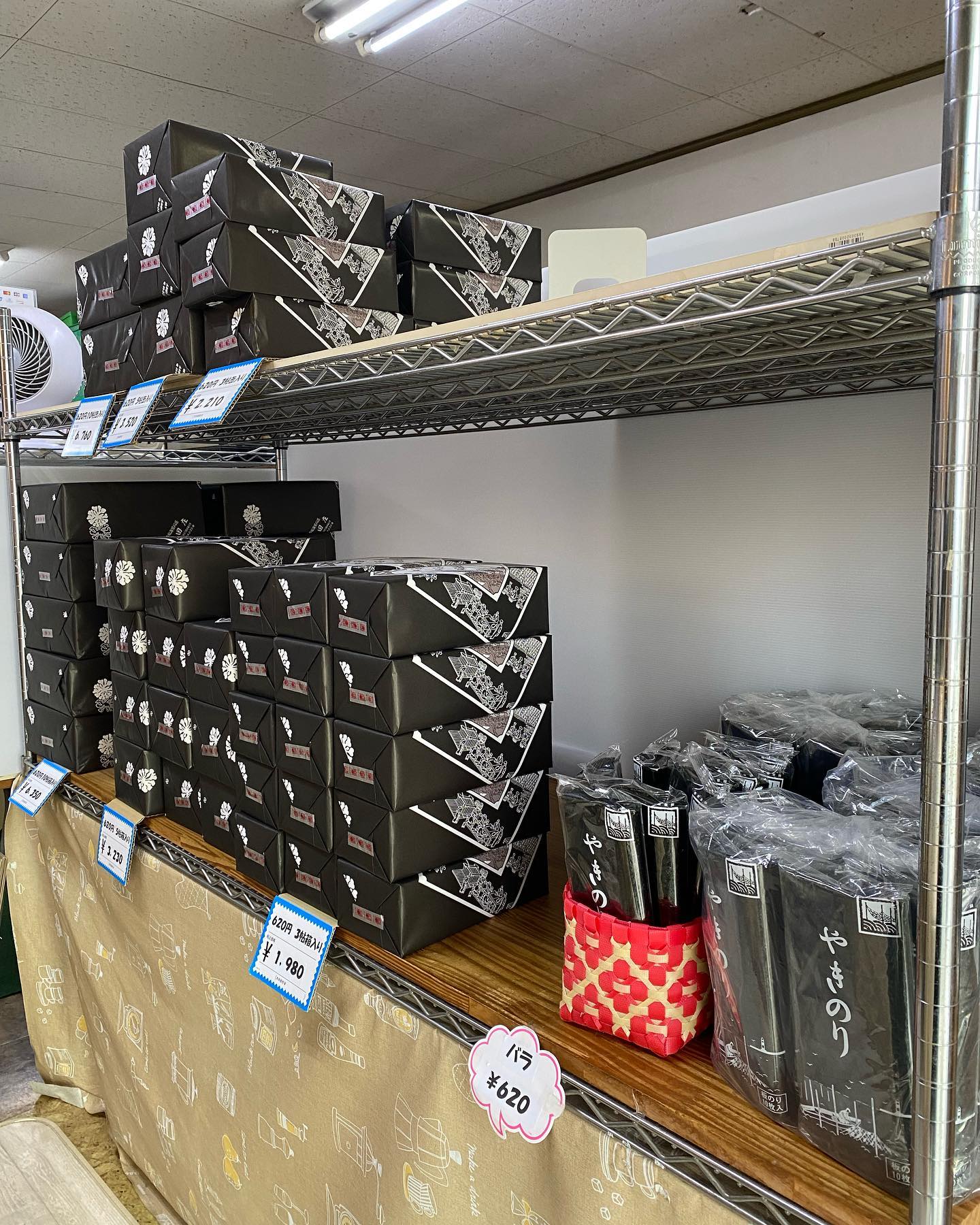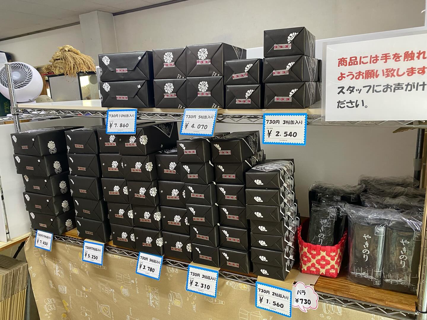 お店の中はこんな感じで海苔がズラ〜っと並んでおります。