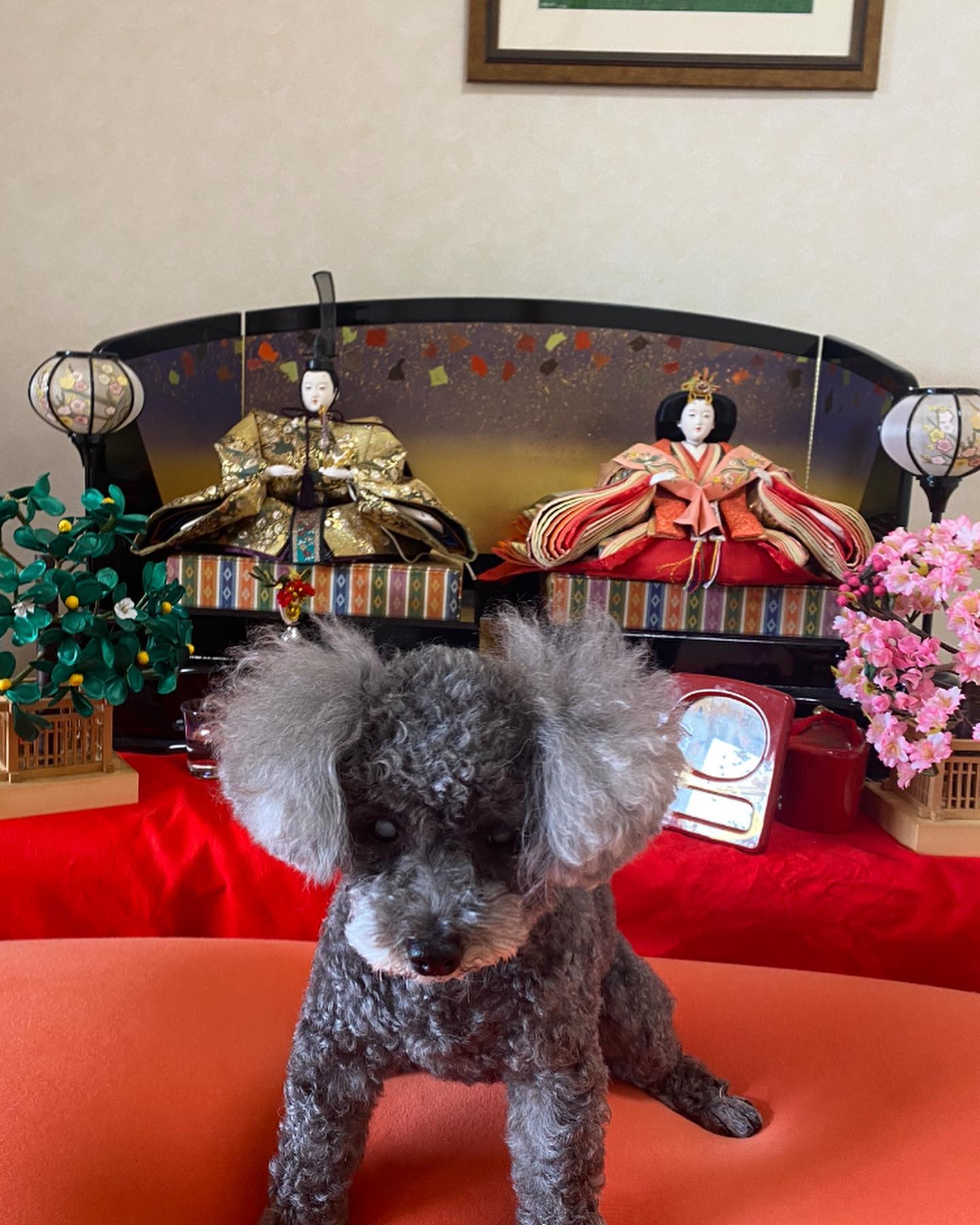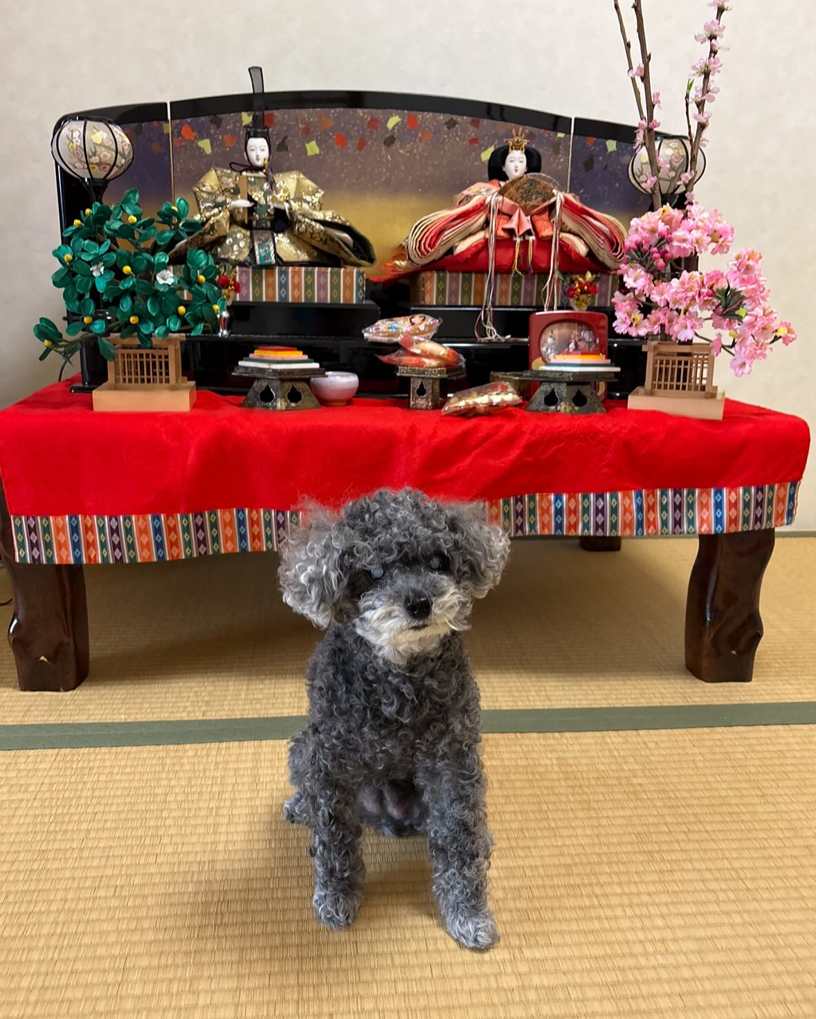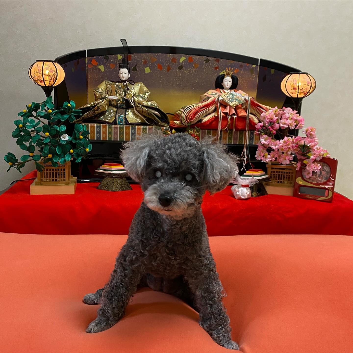毎年恒例の、のり子とお雛様の写真🤳を撮りました😄